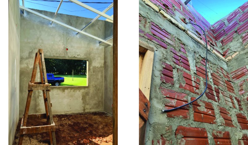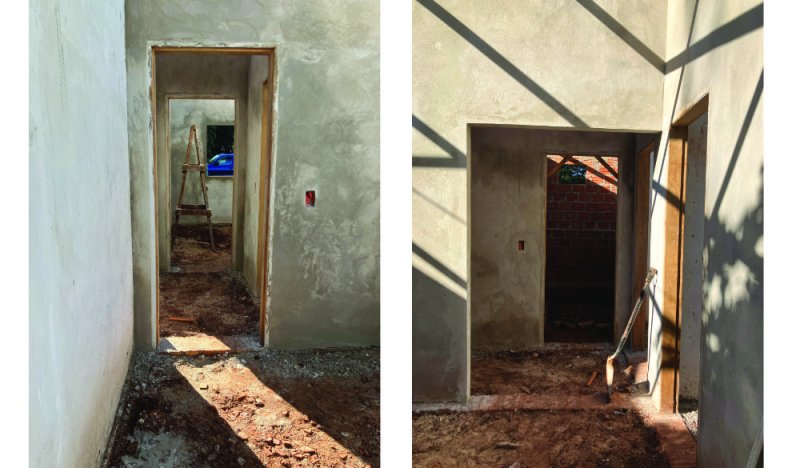 Rafters are going up, more electrical conduits are being put in, and walls are being cemented.