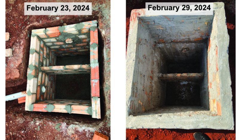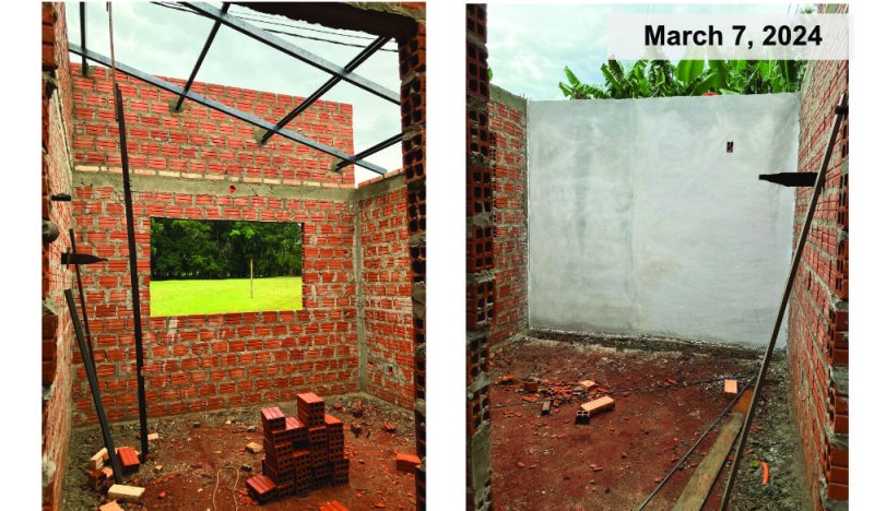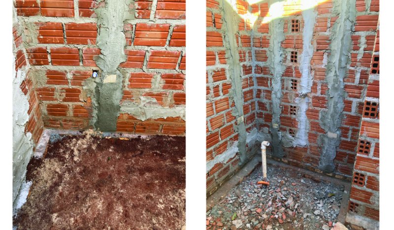 More wall cementing and electrical work is being done. Final preparations for the roof, and floors are being levelled out. Bathroom plumbing has gone in as well.